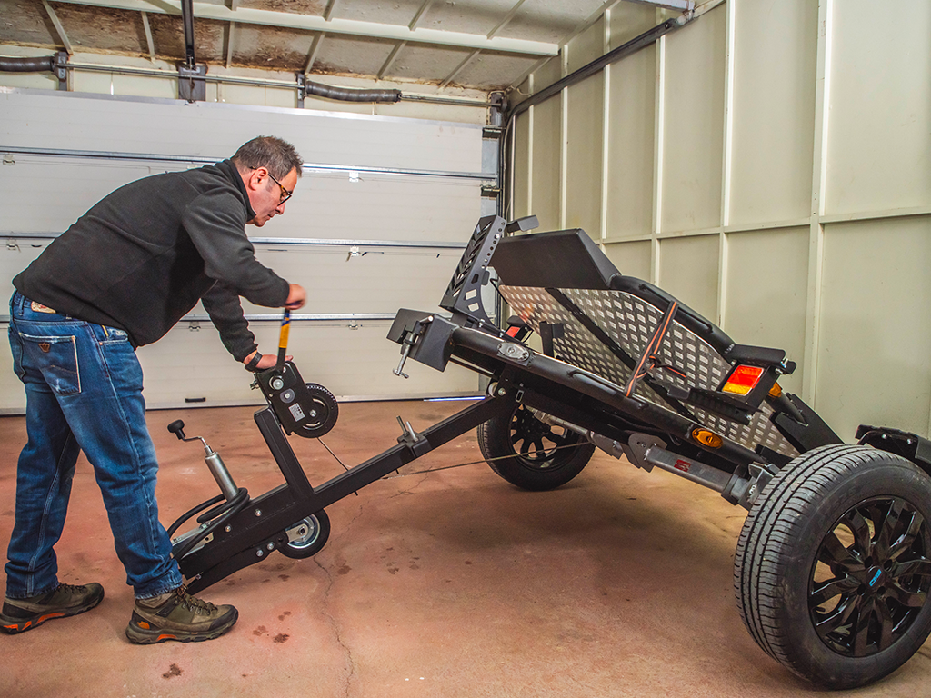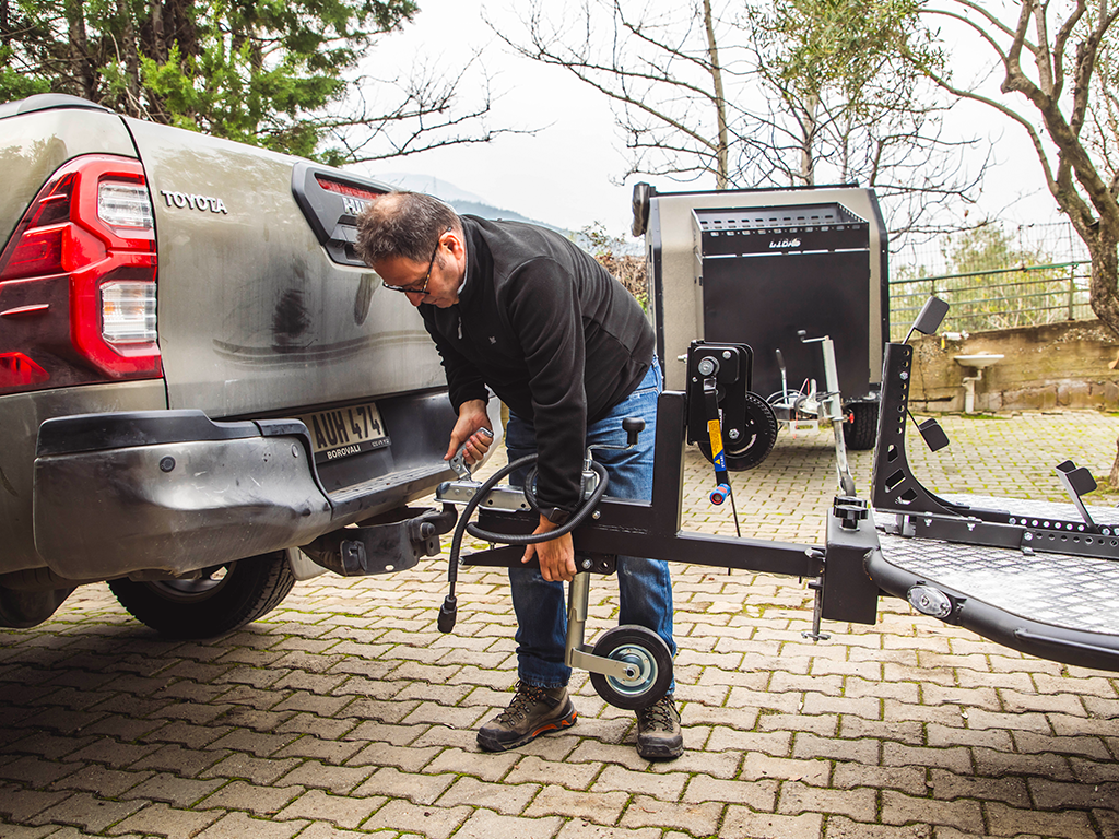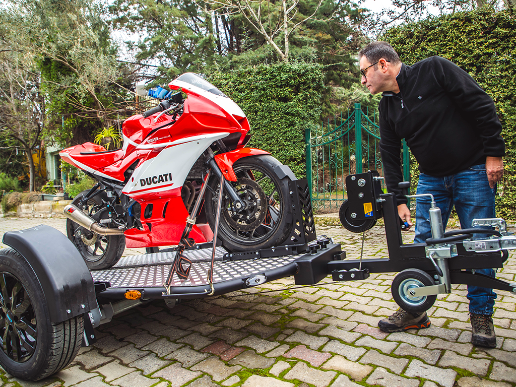 Artık yükleme ve boşaltma işlemlerini tek başınıza, ekstra bir yardıma ihtiyaç duymadan gerçekleştirebilirsiniz. Motosikletinizi sabitlemeyi kolaylaştıran ön teker bağlama aparatı sayesinde güvenle motororunuzu römorka bağlayabilirsiniz.
